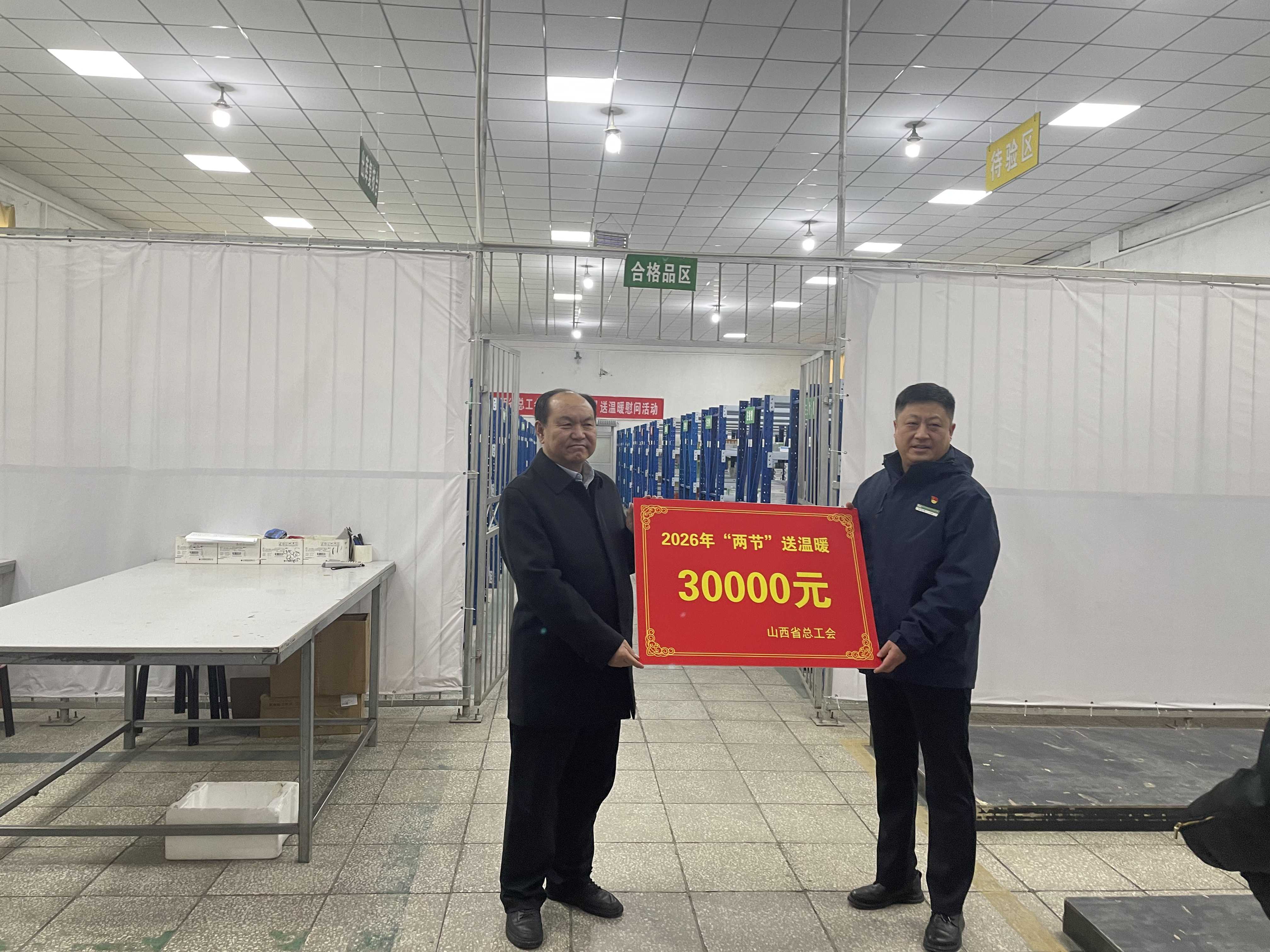 歲寒情愈暖,慰問暖人心。12月30日上午,山西省總工會(huì)二級(jí)巡視員馬孝,市人大常委會(huì)一級(jí)巡視員、市總工會(huì)主席李翠葉,市總工會(huì)黨組書記、常務(wù)副主席李子榮,國投公司黨委專職副書記、副董事長(zhǎng)吳青革一行來到晉城市康辰醫(yī)藥有限公司,開展2026年“兩節(jié)”送溫暖走訪慰問活動(dòng)。把黨組織的關(guān)懷和工會(huì)組織的溫暖送到職工心坎上。