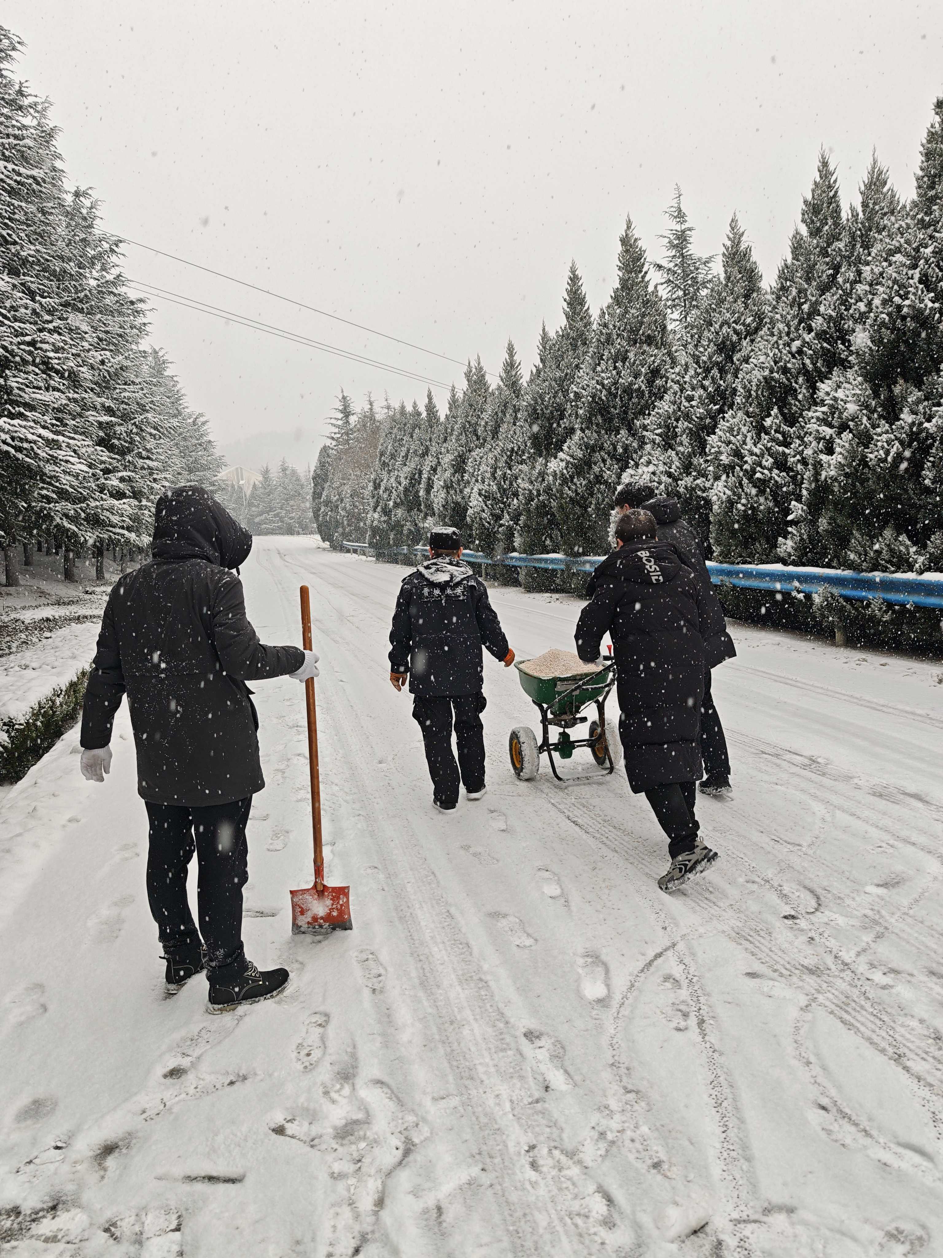 澤鳳路作為公司職工上下班必經(jīng)道路,坡度大、道路窄。一方面,主動(dòng)與交管部門保持聯(lián)動(dòng),根據(jù)路面實(shí)況及時(shí)配合實(shí)施臨時(shí)交通管制,提前防范安全隱患;另一方面,提前對(duì)道路布撒融雪劑,并迅速調(diào)配清雪車輛,加快清除坡道、彎道等重點(diǎn)路段積雪積冰,全力保障道路通行條件。